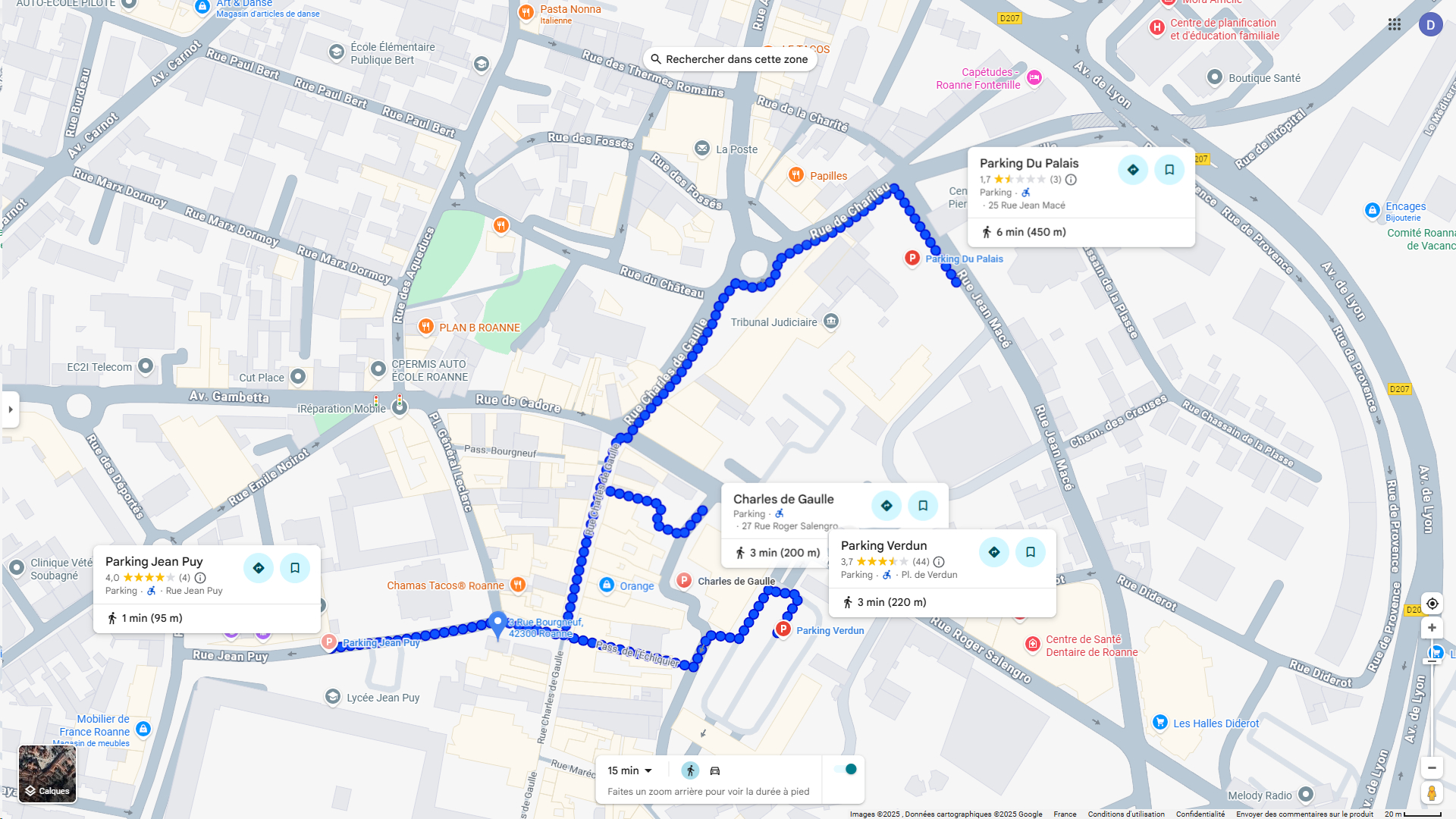 - en voiture, 4 parking à moins de 500m, Jean-Puy, Charles de Gaulle, Verdun, du Palais de justice