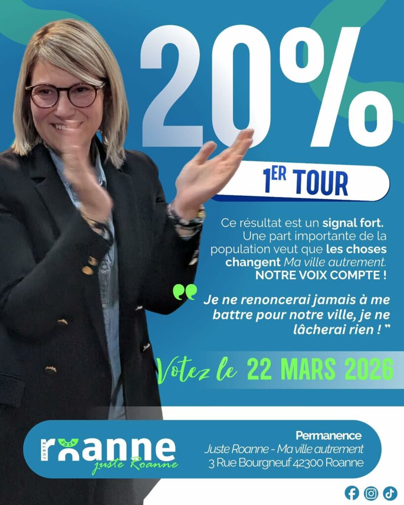 Par votre vote, vous avez fait plus qu’un choix : vous avez ouvert une perspective. Vous avez montré qu’une autre voie était possible pour Roanne.Mais l’élection n’est pas terminée. Dimanche prochain, tout reste à écrire.